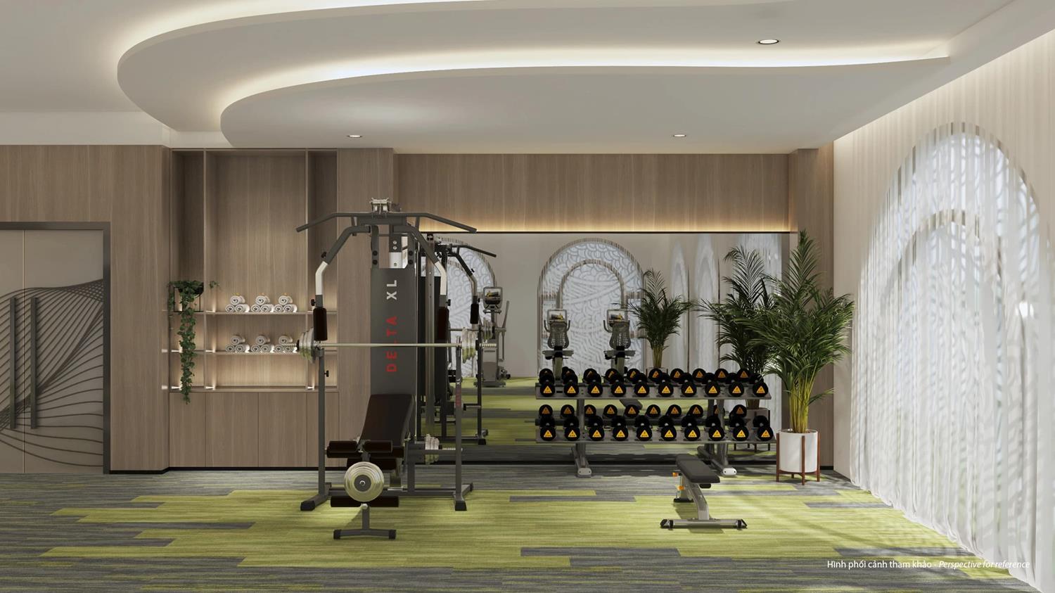 • Công viên cộng đồng (>10.000 m²), bể bơi bốn mùa, phòng gym, spa, sauna – jacuzzi, sân tennis, sân cầu lông, khu tổ chức sự kiện ngoài trời và nhà hàng 5 sao